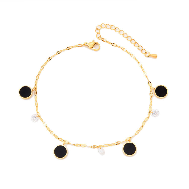 Water Wave Chain Zircon Anklet Small Black Round Pendant Gold Girl Anklet